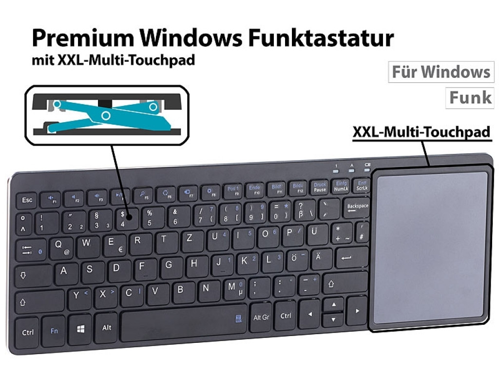 - XXL-Multi-Touchpad: 80 x 93 mm, mit Gestensteuerung für Links- und Rechtsklick, Zoomen, Scrollen u.v.m.